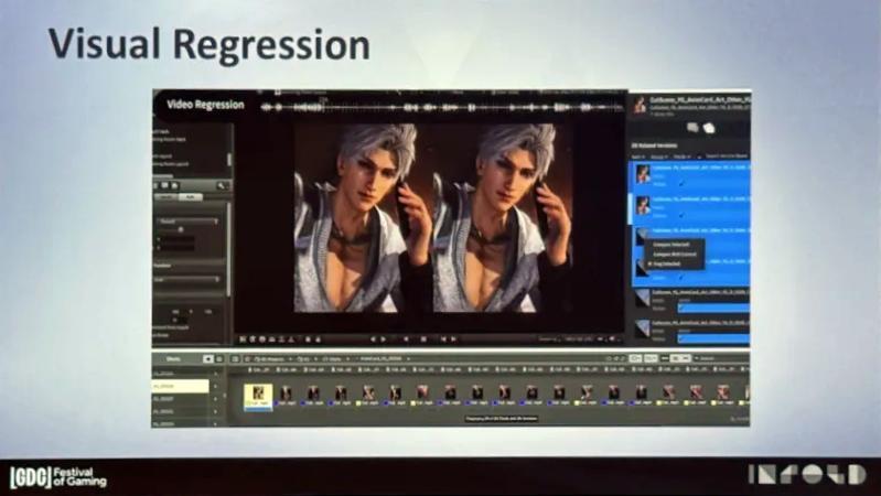 为了防止同事之间互相覆盖修改资产,叠纸还建立了一整套工业级护栏,包括明确的资产所有权界定、自动化的资产验证报错。每天晚上趁着大家下班,“渲染农场”里自动跑测试录制海量的对比视频,进行视觉回归监测。