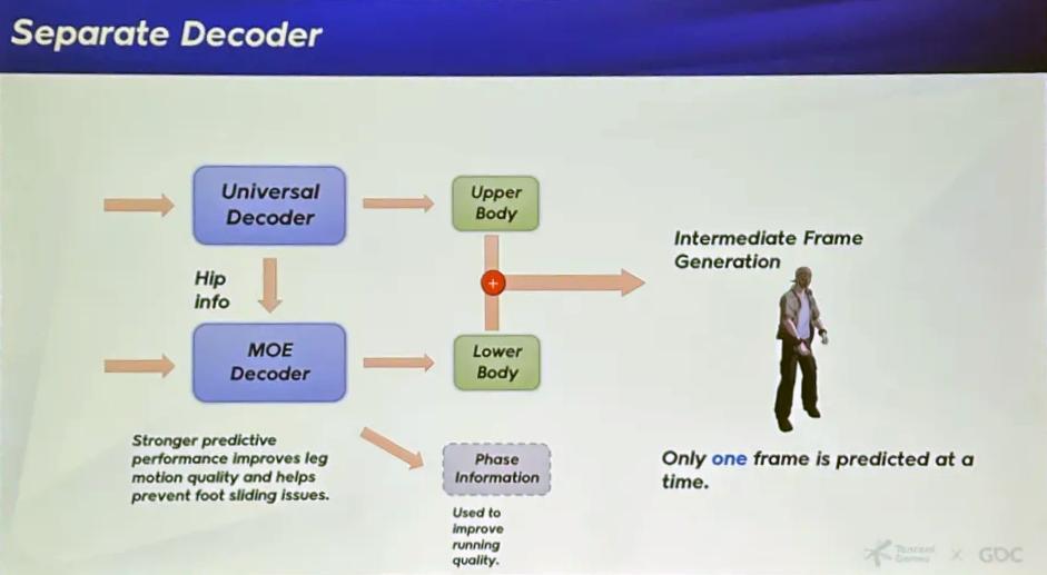 为了杜绝动作过渡时产生“滑步”问题,他们还在架构上动了刀,把解码器做成了上下半身分离,让模型对下半身的预测变得更敏锐。在游戏实际运行中,这个6MB的小模型在引擎内开辟了单独的异步线程串行推理,每次推理耗时被压缩在0.4毫秒内,完全不会抢占游戏原本的动画系统资源。